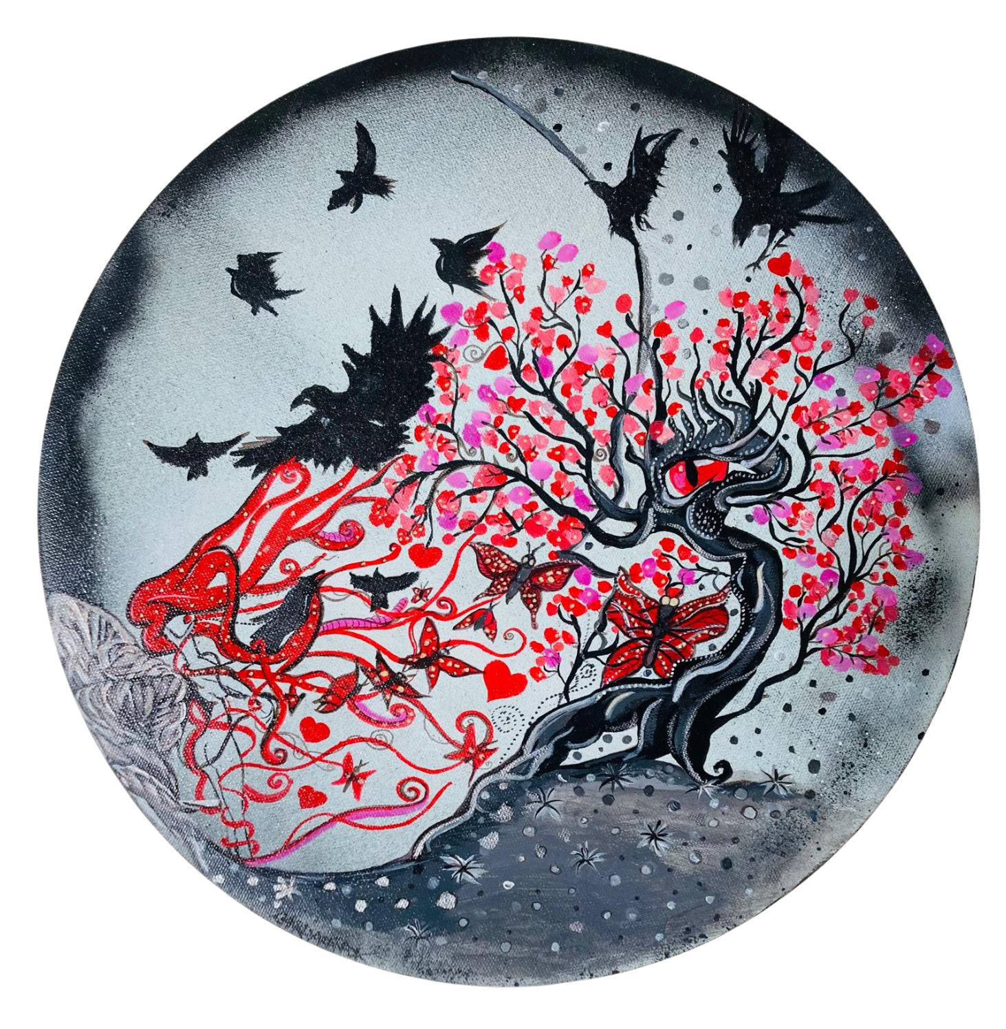 Peinture sur toile numérotée et signée diamètre 30cm. Exemplaire unique.
