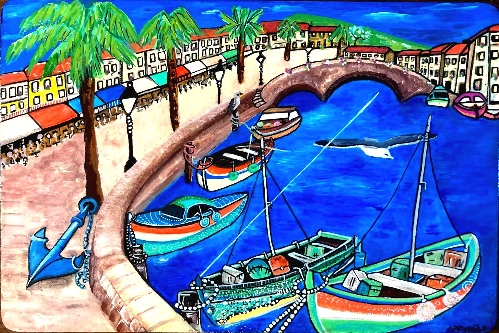 Créations personnalisées pour illustrer les appartements d’un magnifique Gîte de Balaruc (Sète)/ Peinture acrylique sur bois